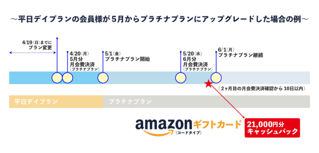平日デイ (9,000円)→ プラチナ(30,000円)へ変更の場合